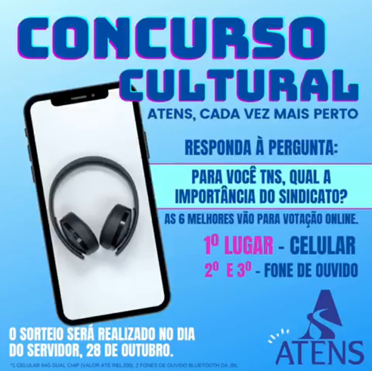 Para aumentar suas chances, você pode comentar quantas frases quiser. Só não vale repetir. Lembrando que o sorteado precisa ser filiado ao ATENS e seguir nossas páginas nas redes sociais.