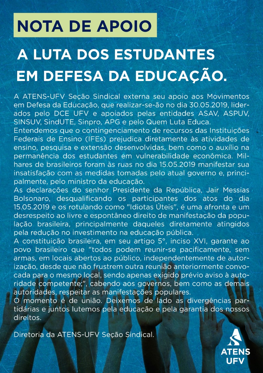 / Nota de apoio – A luta dos estudantes em defesa da Educação