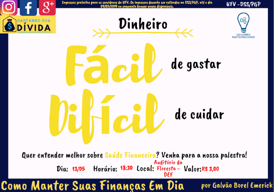 A DSS/PGP convida a todos para a palestra Como Manter Suas Financias em Dia!